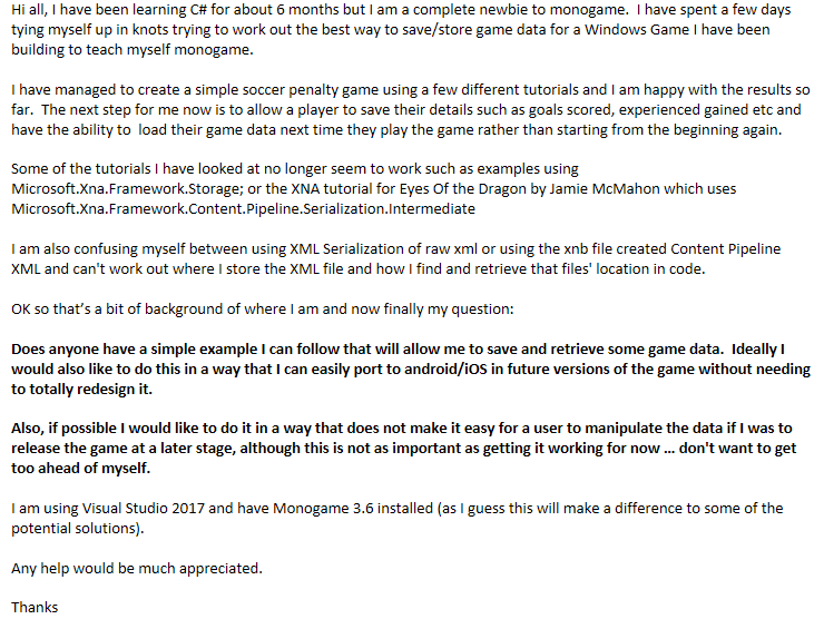 SOLVED] Need a Save Game Example - Windows - Community | MonoGame
